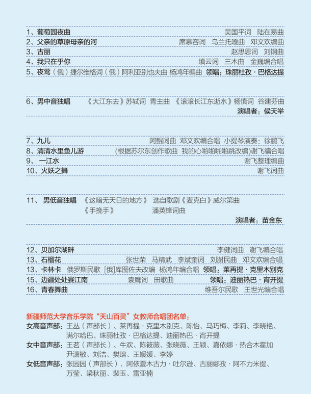 演出單位:新疆師范大學音樂學院“天山百靈”女教師合唱團