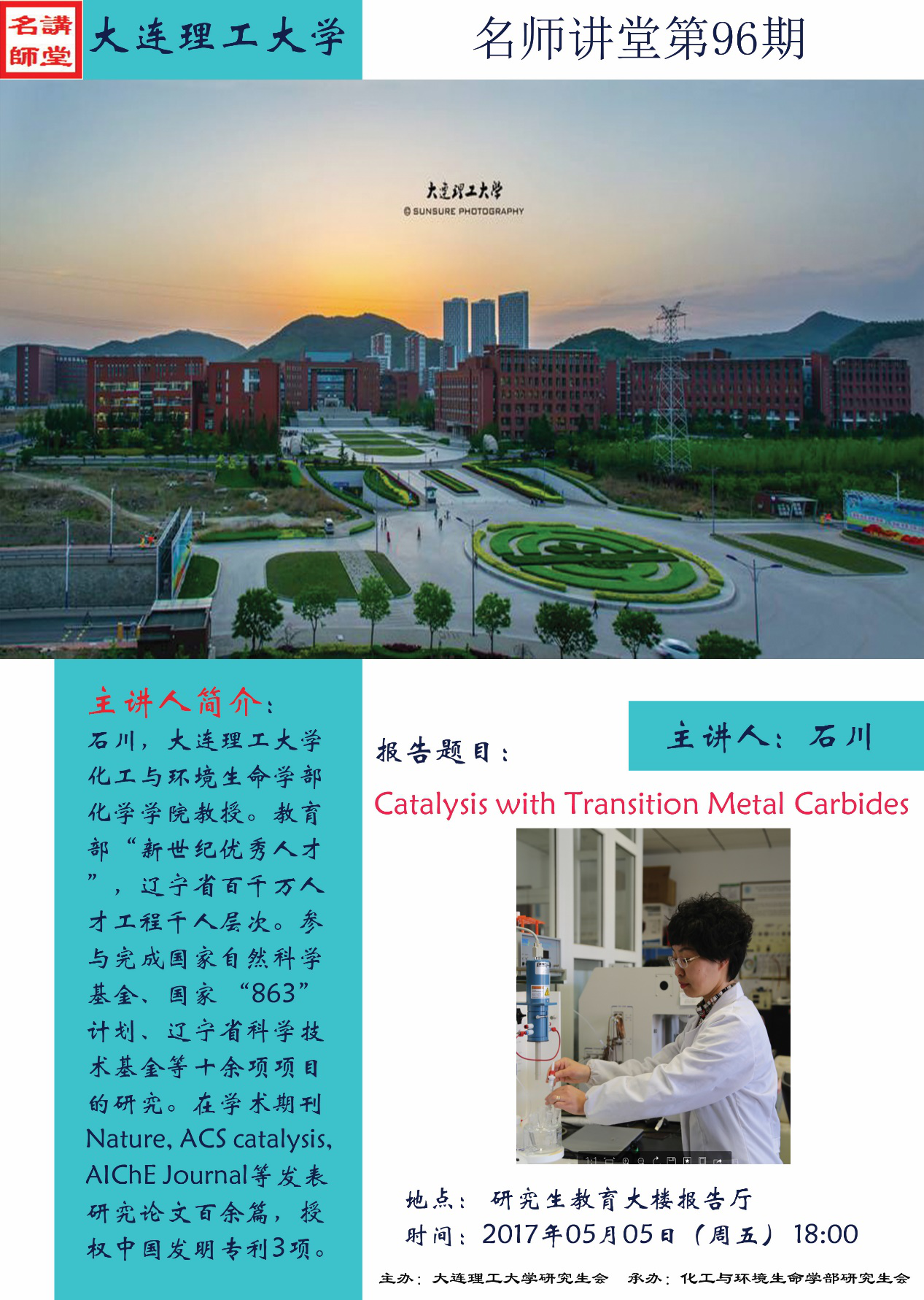 大連理工大學“名師講堂”本期邀請到了化工與環境生命學部石川教授為我們帶來“Catalysis with Transition Metal Carbides”的專題講座,通過石川教授自己的研究方向和多年的科研經歷向我們詮釋一個科研工作者應當具有的科研態度和專業素質。在這個五月的天,剛誕生的夏天,激勵我們遇見更好的自己!